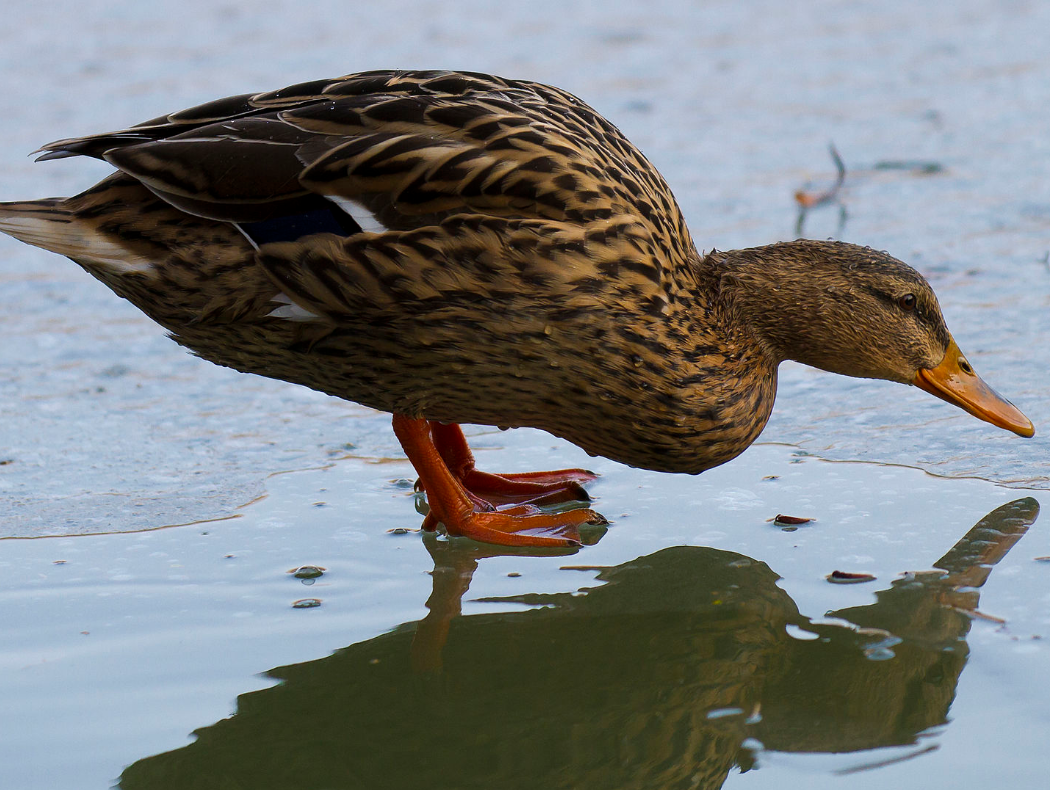 Photo: Self Reflection as a means to improving society. A female mallard duck (Anas platyrhynchos) and her reflection on the water of a frozen lake in Toulouse, by PierreSelim, Wikimedia