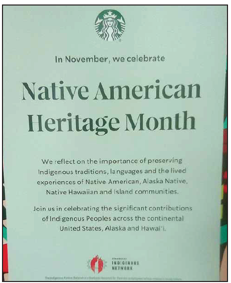 Look who’s showing some corporate love to the Native American community. As an avid Starbucks drinker, I was so proud to learn that my pennies go to supporting the Native American community. Starbucks, Chevron, and Qualcomm have always donated to Native American issues and have a continued interest in making sure that Native culture thrives. We want to give a huge thank you to Corporate America for its support and respect for the Indigenous.